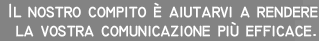 Il nostro compito è aiutarvi a rendere la vostra comunicazione più efficace. Vi proponiamo servizi integrati e una struttura compatta, flessibile e duttile. Sarete affiancati da persone competenti e felici del loro lavoro, da strumenti tecnici avanzati, da esperienza.